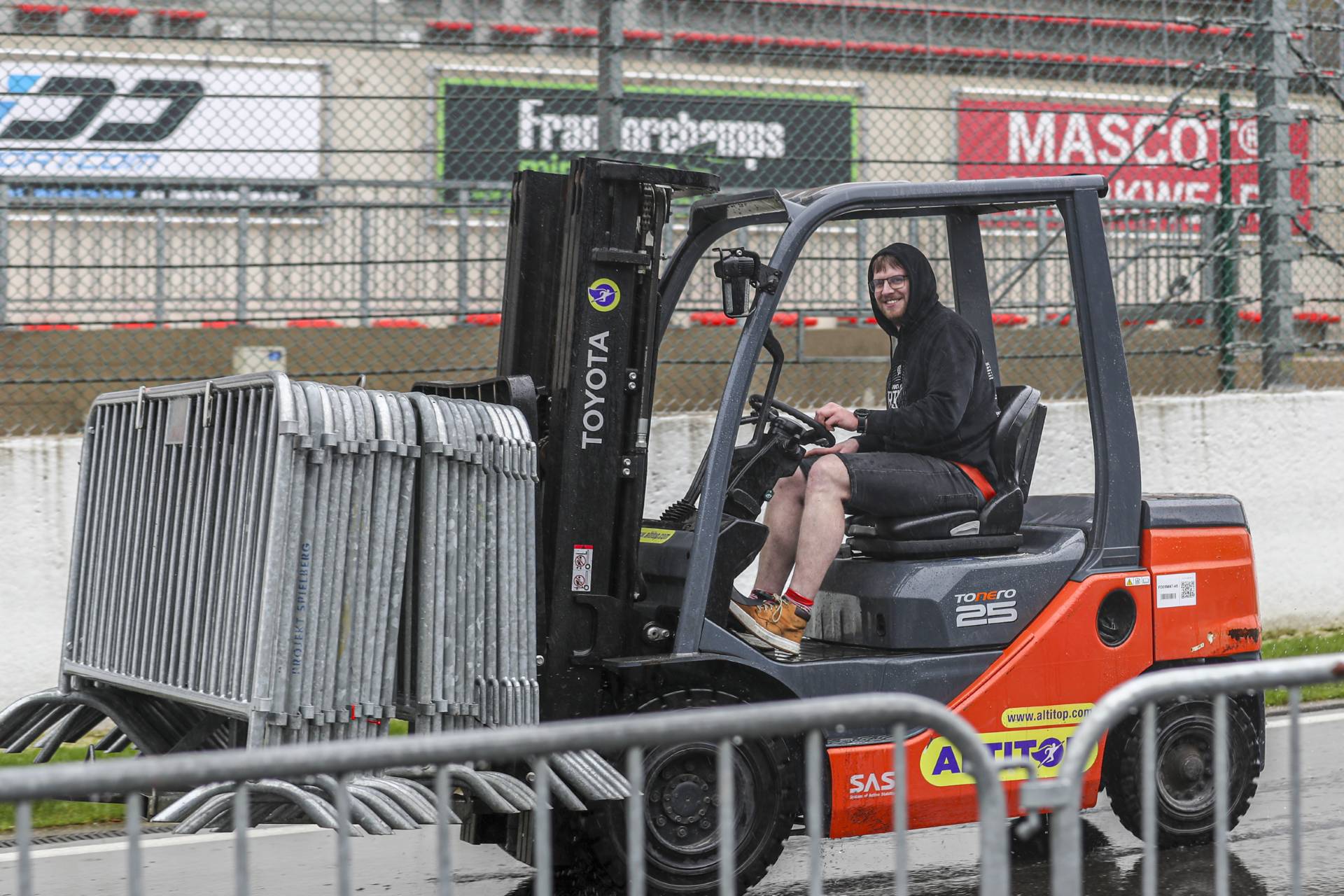 De tribunes op het circuit zijn overdekt, dus daar kun je als deelnemer of bezoeker droog zitten. Daarnaast is het restaurant ook gewoon geopend.