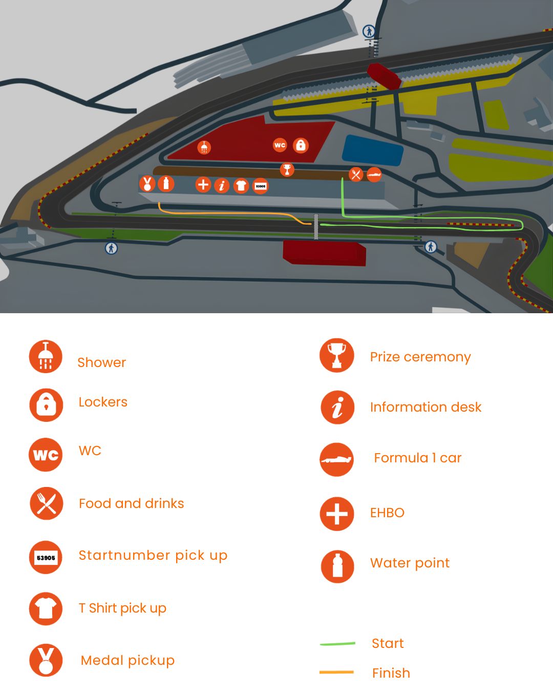 De officiële evenementplattegrond staat nu online! Van parkeerterreinen en ingangen tot toiletten, lockers, horecapunten en natuurlijk de start- en finishzone: alles is duidelijk aangegeven, zodat jij precies weet waar je moet zijn.